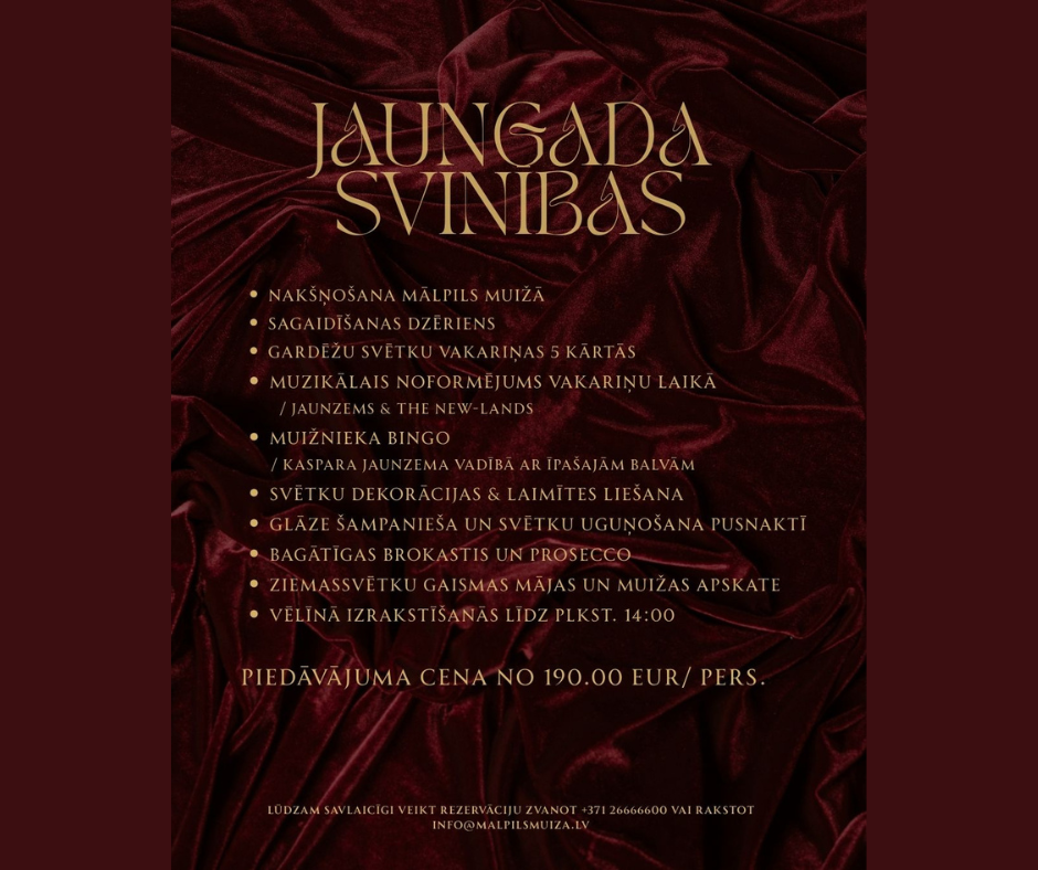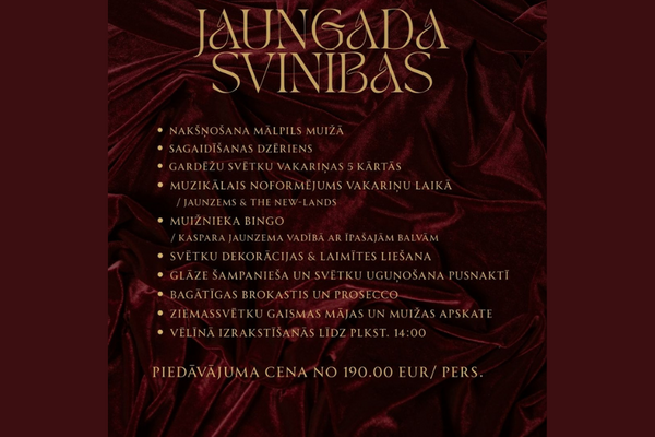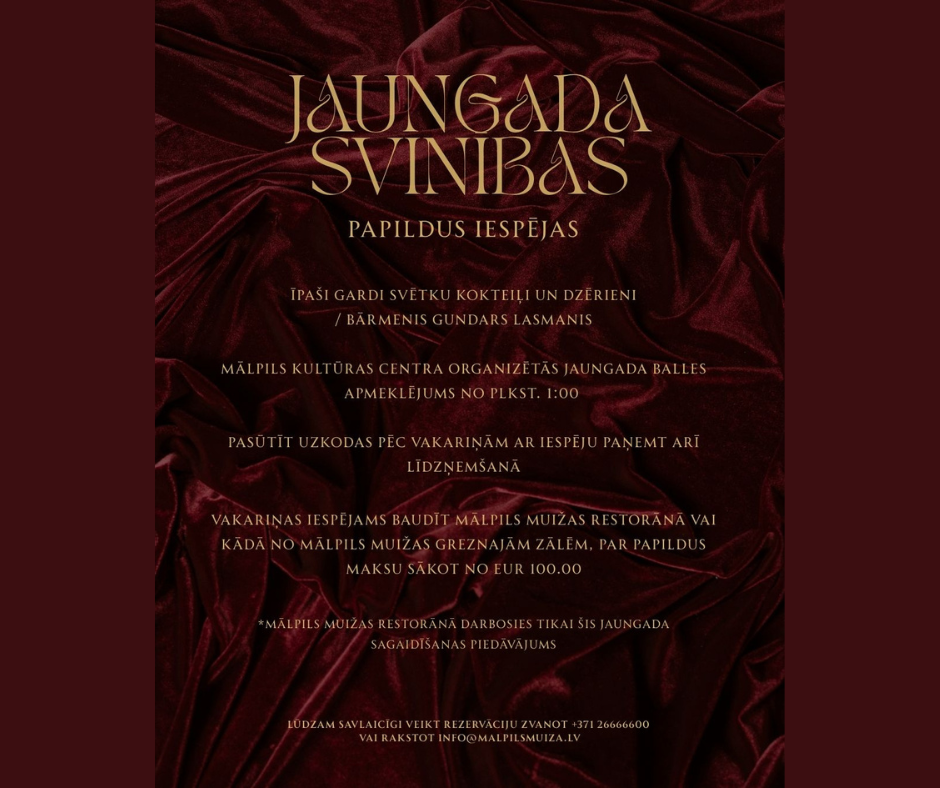 *Only this New Year's Eve offer will be valid at the Mālpils Manor restaurant.