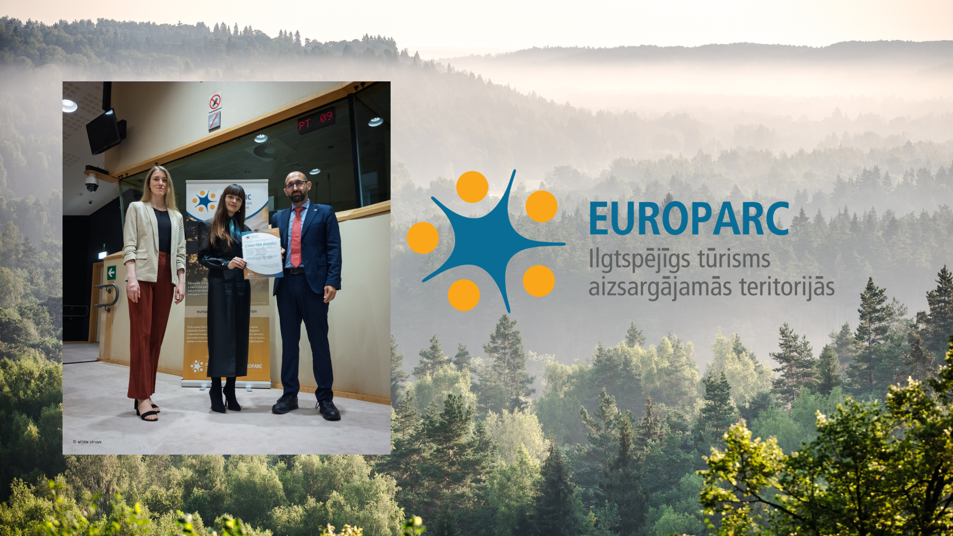 Meanwhile, the Enter Gauja association’s Marketing and Communications Specialist Kristīne Luca emphasised at the moment of receiving the award: “We will use the EUROPARC Charter to learn and adapt best practices for developing sustainable tourism. We will continue to build new, professional cooperation with other European protected nature areas. We express gratitude to everyone who is involved in the development of sustainable tourism in Gauja National Park – tourism entrepreneurs, residents, the agency, the university, municipalities, and colleagues.”