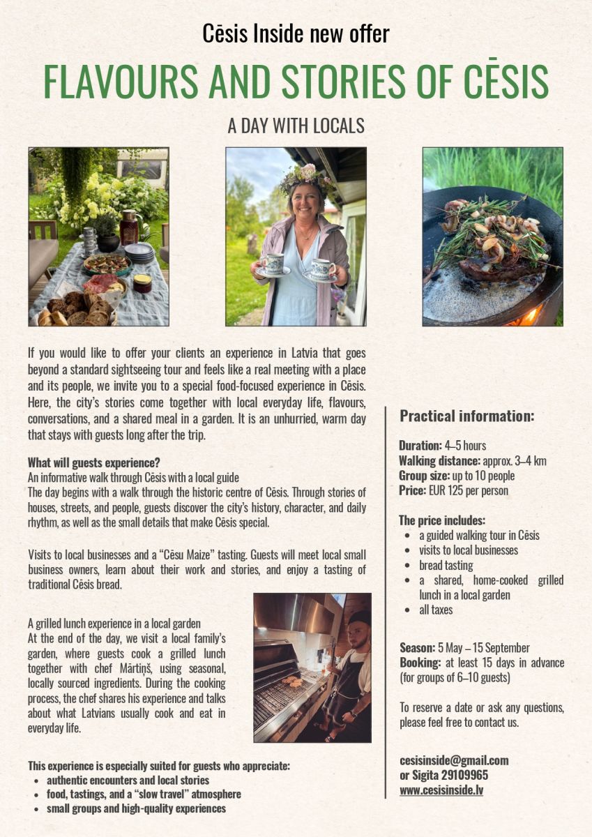 Book in advance: cesisinside@gmail.com; +371 29109965; www.cesisinside.lv