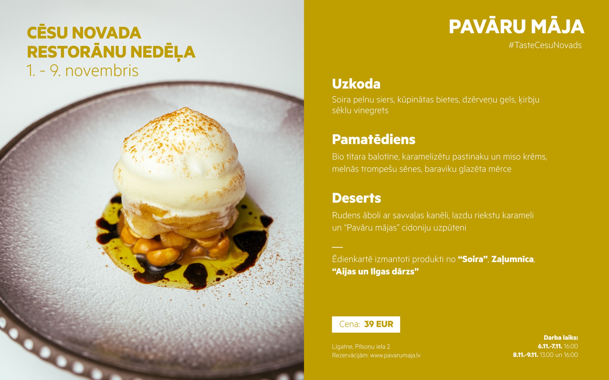 Restorānu nedēļa piedāvā lielisku iespēju gan Cēsu novada iedzīvotājiem, gan viesiem no citām Latvijas pilsētām doties rudenīgā garšu ceļojumā. Apmeklētāji tiek aicināti atbalstīt vietējos uzņēmējus un piedzīvot restorānu radītās maltītes, kas caur garšām atklāj Cēsu novada sirdi.