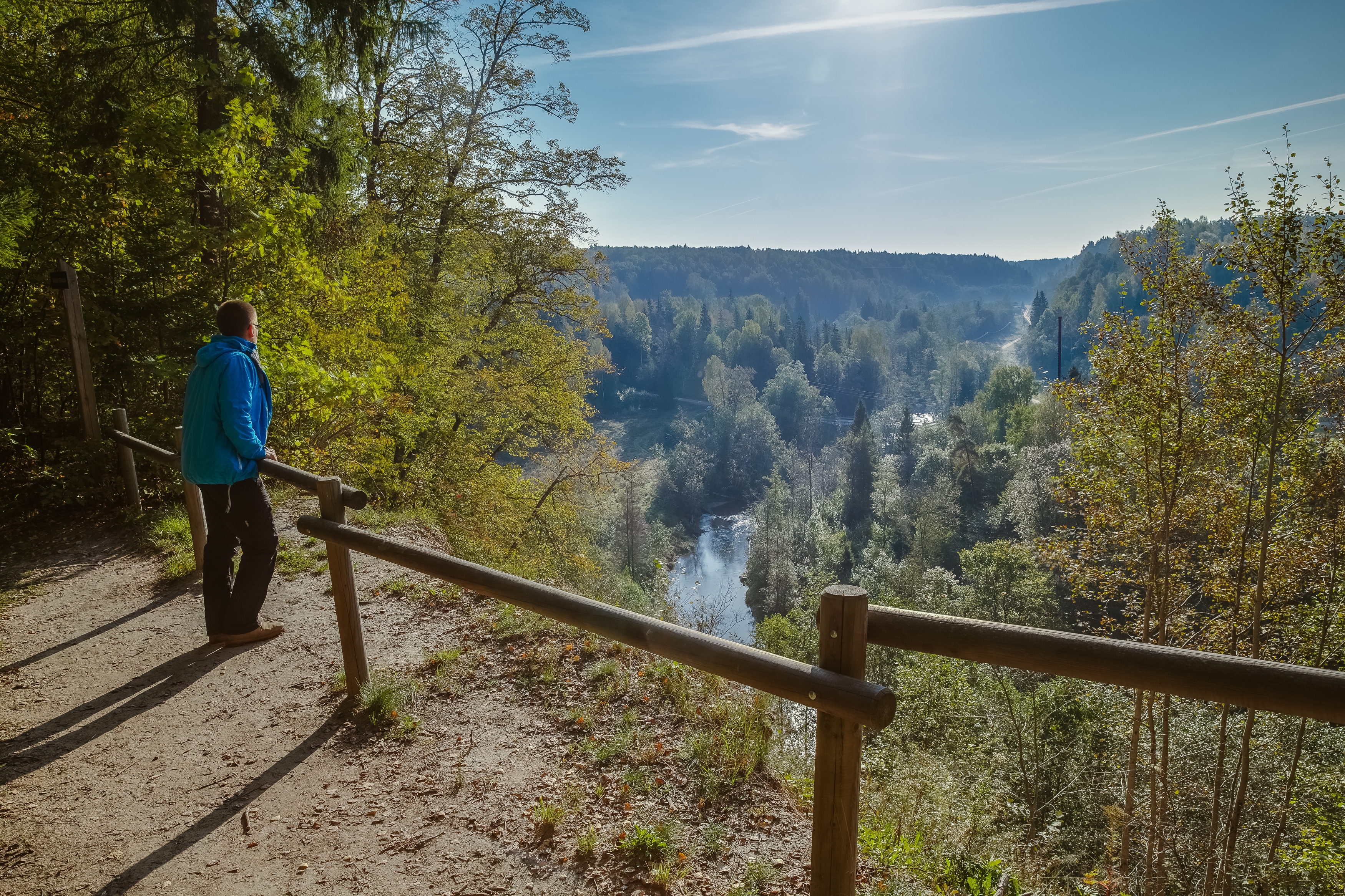 Der obere Teil der Steilwand besteht aus dem Dolomitgestein der Pļaviņu-Suite, darunter liegt Sandstein der Amata-Suite. Die Ainavu-Steilwand befindet sich auf dem rechten Flussufer gegenüber der Fischzüchterei Kārļi. In der laublosen Periode sind sie von der Kārļu-Brücke aus gut sichbar. Sie gehören zu den höchsten Freilegungen Lettlands.