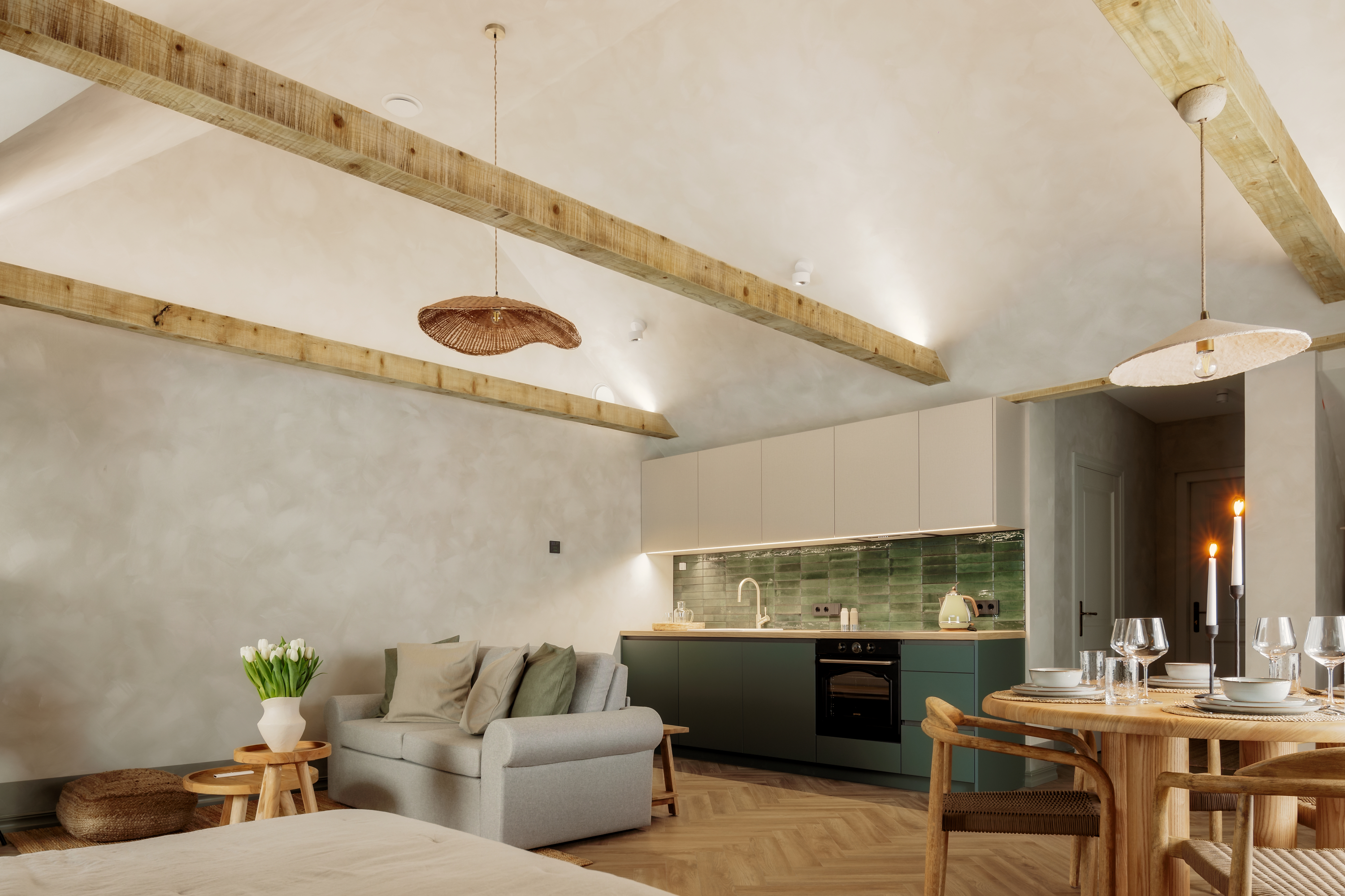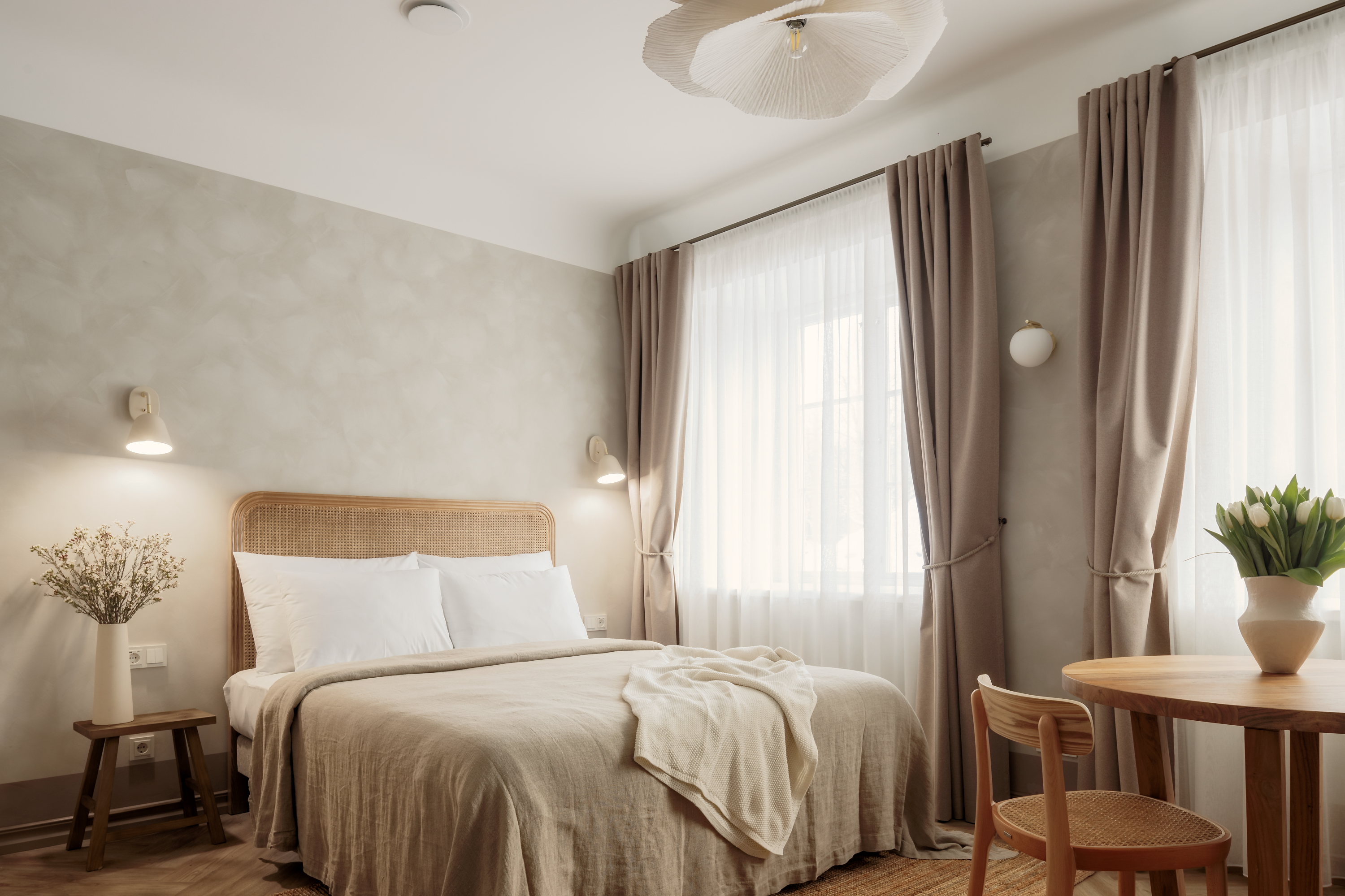 Each apartment carries its own character, mood and proportions, with thoughtful details that make every space feel alive and deeply personal. The design is bold yet never overwhelming — inviting you to slow down, feel inspired, and simply be.