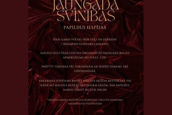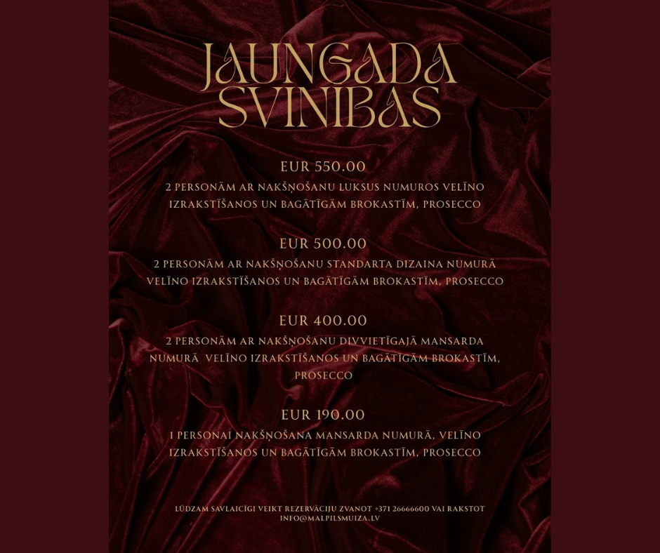 *Only this New Year's Eve offer will be valid at the Mālpils Manor restaurant.
