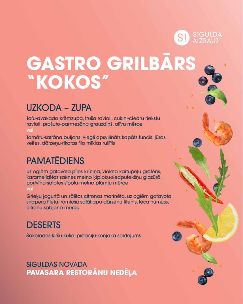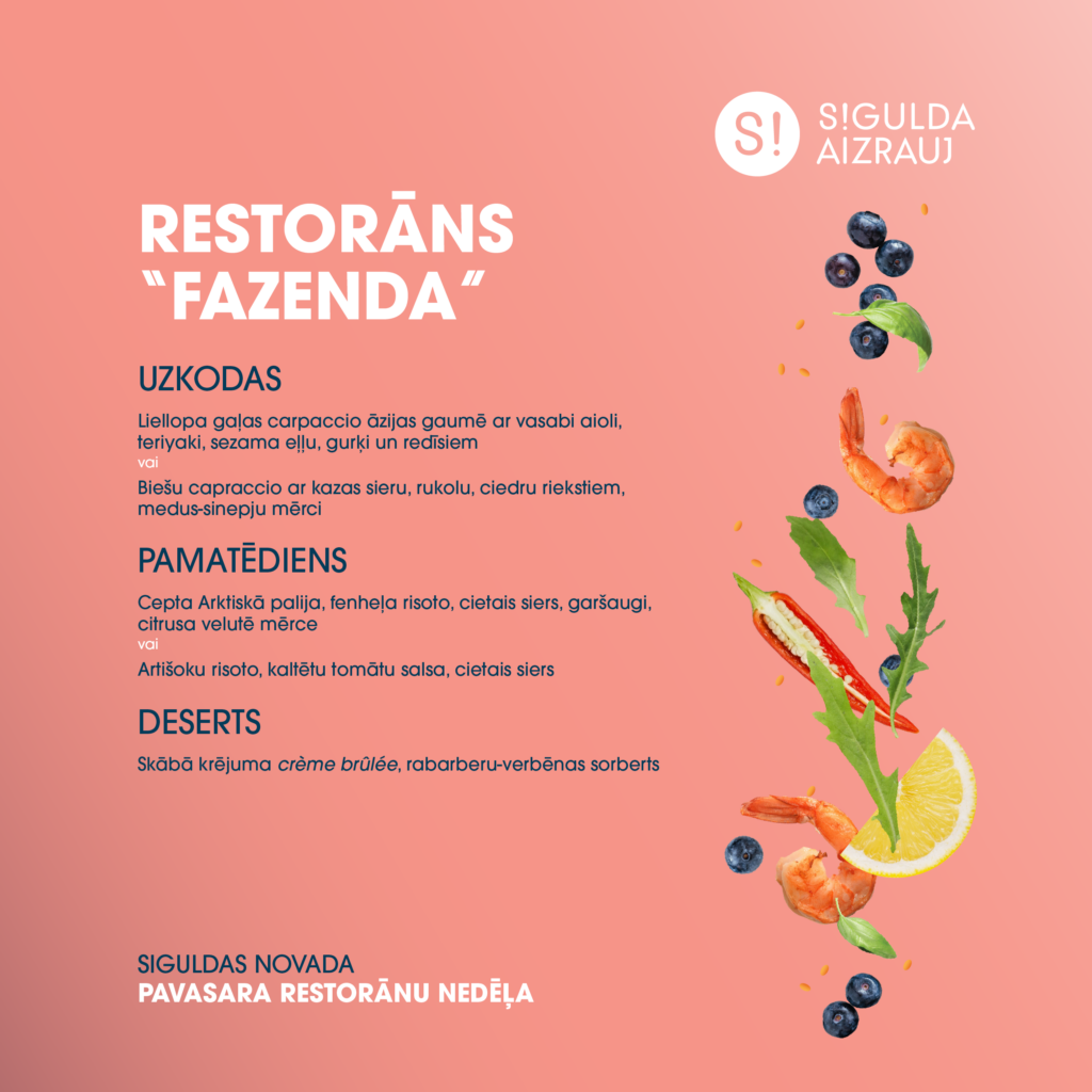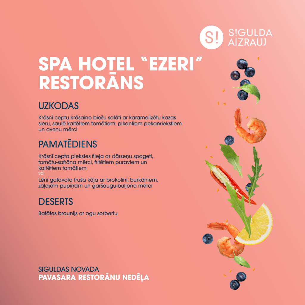 Sigulda County Spring restaurant week will take place from April 10 to 19, during which several Sigulda County restaurants and cafes will have the opportunity to enjoy fresh, spring and flavour-rich three meals worth €35.