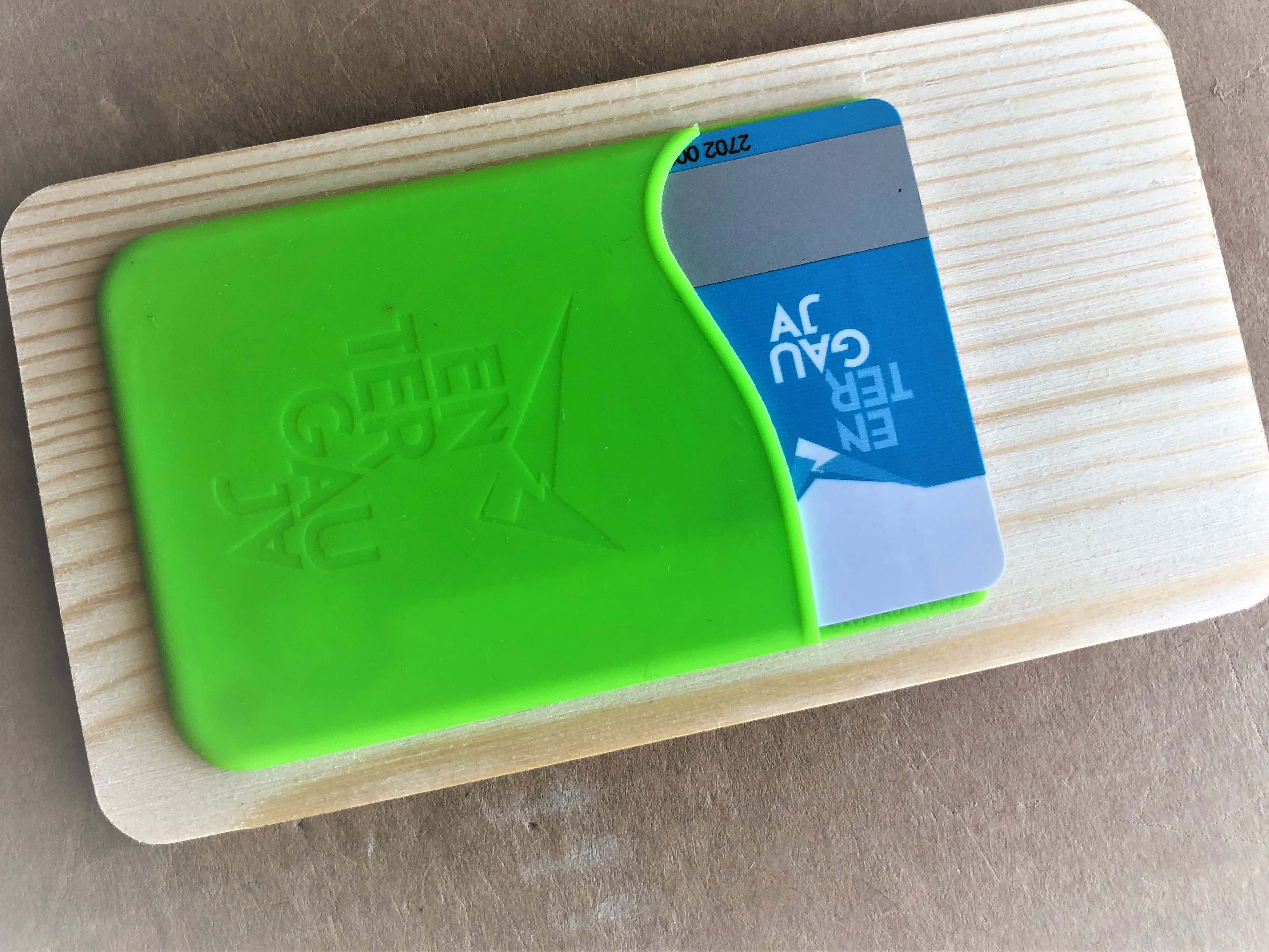 Pie telefona līmējams silikona karšu turētājs. Vienlaicīgi droši turēs vismaz 2 kartes. Maksājot var "pīkstināt" karti neizņemot no maciņa.