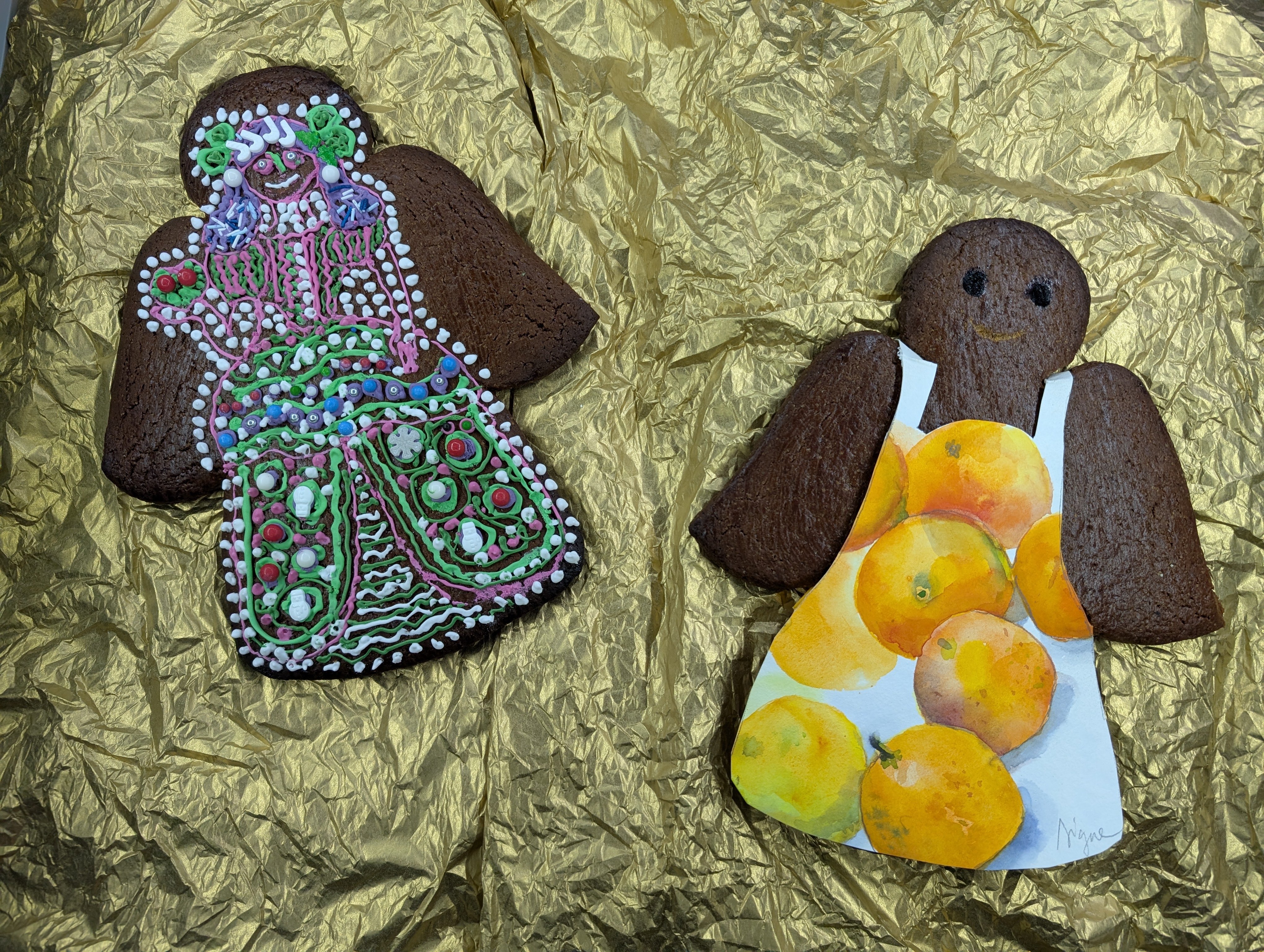 Divpadsmit mākslinieki apgleznojuši īpaši darinātus piparkūku eņģeļus, kas tapuši radošā sadarbībā ar biedrību “Cerību spārni” un sociālo uzņēmumu “Visi var”. Katrs eksponāts ir unikāls – elpo Ziemassvētku smaržu, stāsta par gaismu un cerību, ko eņģeļi simbolizējuši cauri laikiem. Indra Seļuka, sociālā uzņēmuma "Visi Var" vadītāja pastāstīja: “Piparkūku cepējas ir Ilze Davičuka un Gaida Solovjova, kuras ar lielu interesi apgūst jaunas prasmes. Gaida norāda, ka nekad nav cepusi tik lielas piparkūkas un ļoti grib redzēt kāds būs gala rezultāts, kad mākslinieki būs tās apgleznojuši. Dienas centra "Mālpils" jaunieši jau ir ieplānojuši, ka visi kopā apmeklēs izstādi, noteikti arī citi dosies apskatīties šo skaisto kopdarbu, jo visiem interesē gala rezultāts. Piparkūku gatavošanā tiks izmantoti gandrīz 9 kilogrami piparkūku mīklas un katrs eņģelis tiek īpaši rūpīgi veidots un cepts.”
