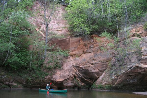 Raunas lielākais smilšakmens atsegums - ap 300 m garumā tā augstums sasniedz 14,5 m, taču visas kraujas augstums ir 22 m. Nākamājā upes līkumā ir vēl viens - izmēros zemāks atsegums.